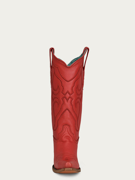 Corral Women's Snip Toe Boots Z5073 Stitch Pattern & Inlay Pullstraps - Red