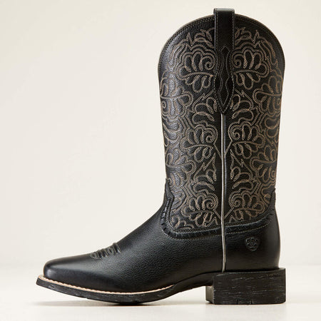 Ariat Women's Round Up Remuda Wide Square Toe Western Boot 10034024 - Black Deertan